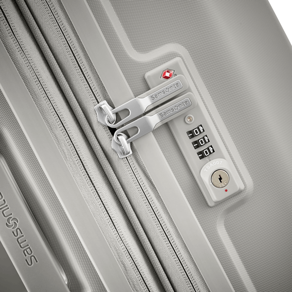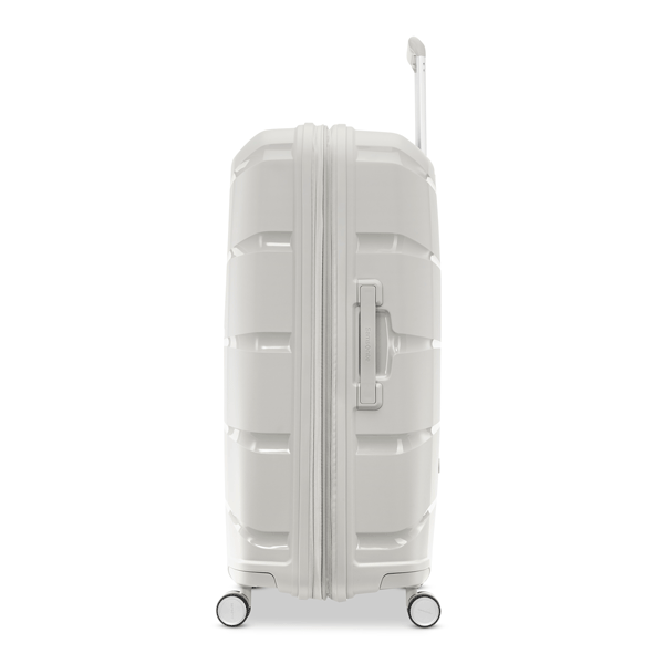 Les poignées de transport supérieure et latérale rétractables restent près de la valise pour la protéger contre les dommages.