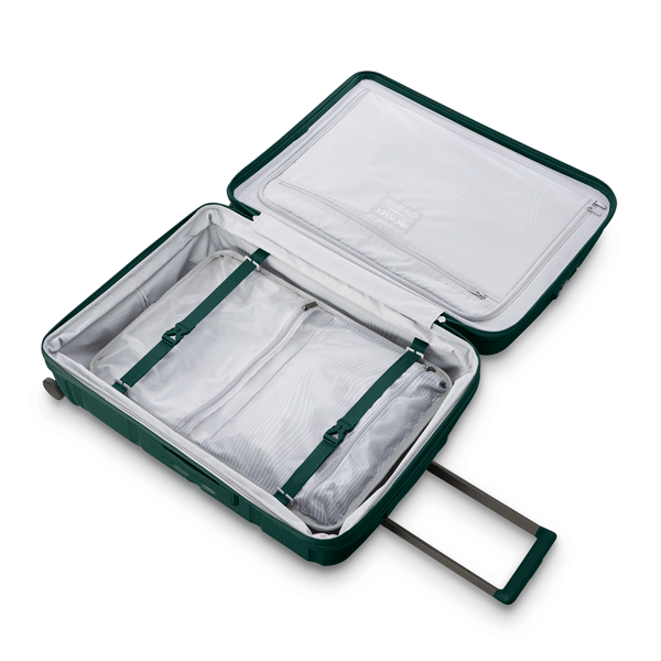Les poignées de transport supérieure et latérale rétractables restent près de la valise pour la protéger contre les dommages.