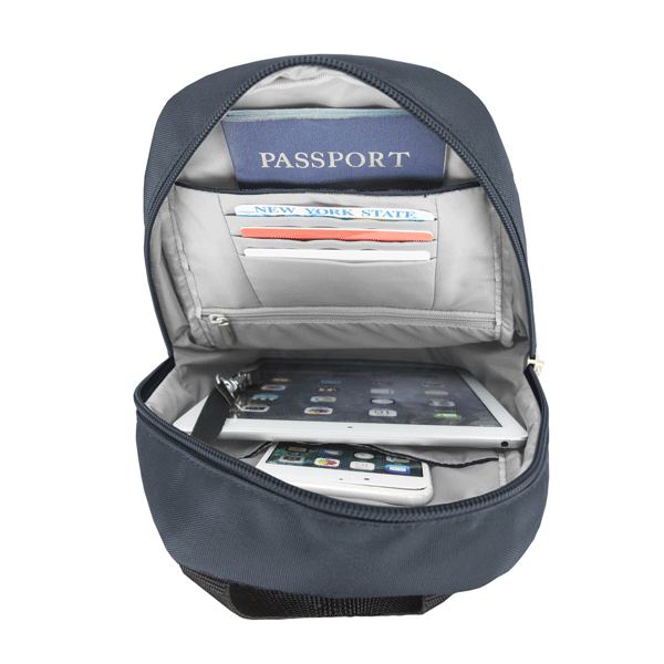 Le compartiment principal est doté d’un panneau de rangement, de poches plaquées et d’une poche zippée