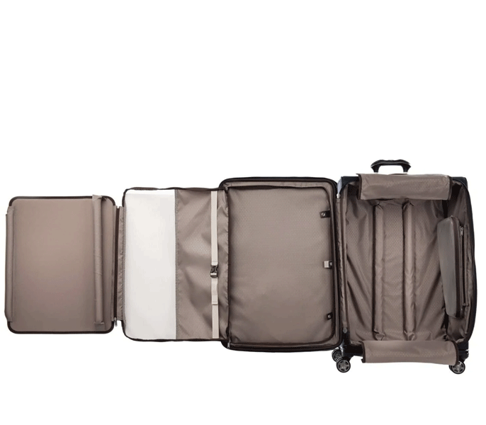 Le porte-costume dépliable intégré permet de garder les vêtements infroissables pendant le voyage.