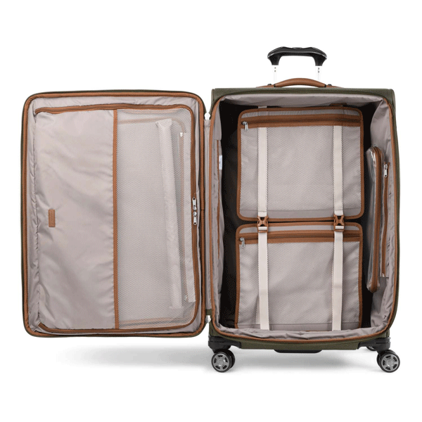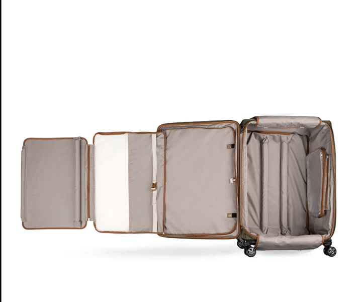 Le porte-costume dépliable intégré permet de garder les vêtements infroissables pendant le voyage.